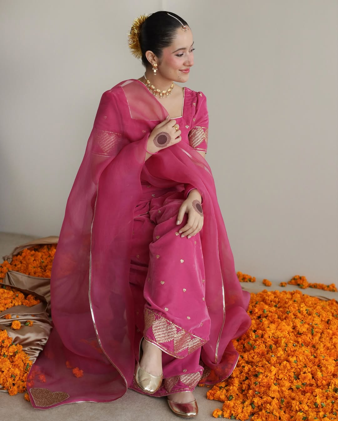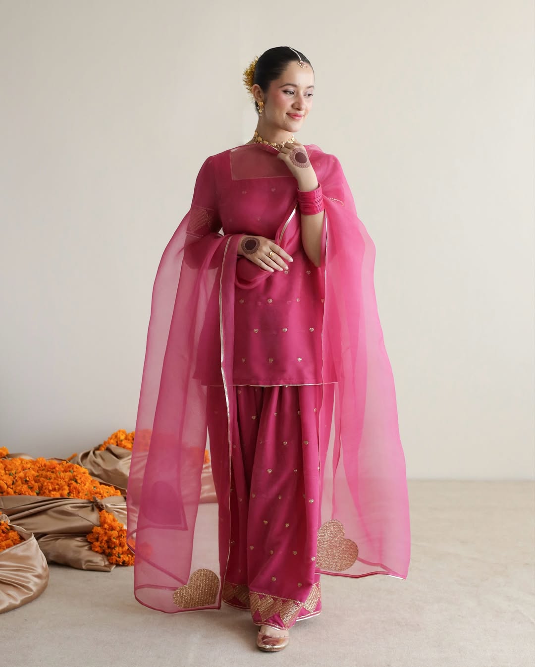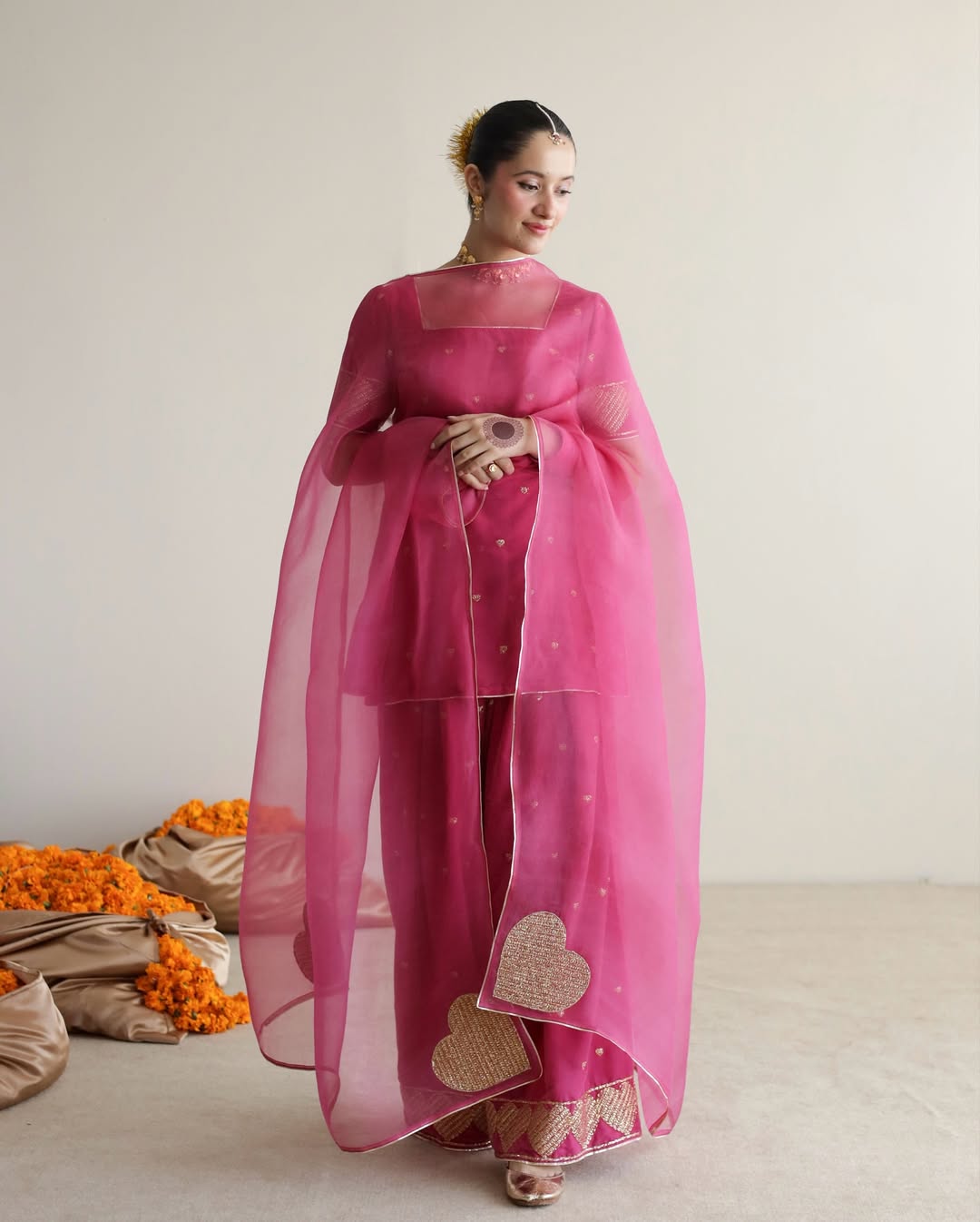 This exquisite Festive/Party Wear Kurta Set is a stunning ensemble perfect for any celebration. The short pink PK Raw Silk Kurta features intricate embroidery for a touch of elegance. Paired with a Farshi Shalwar in the same fabric and a sheer Organza Dupatta, this 3-piece set is a must-have for summer festivities.