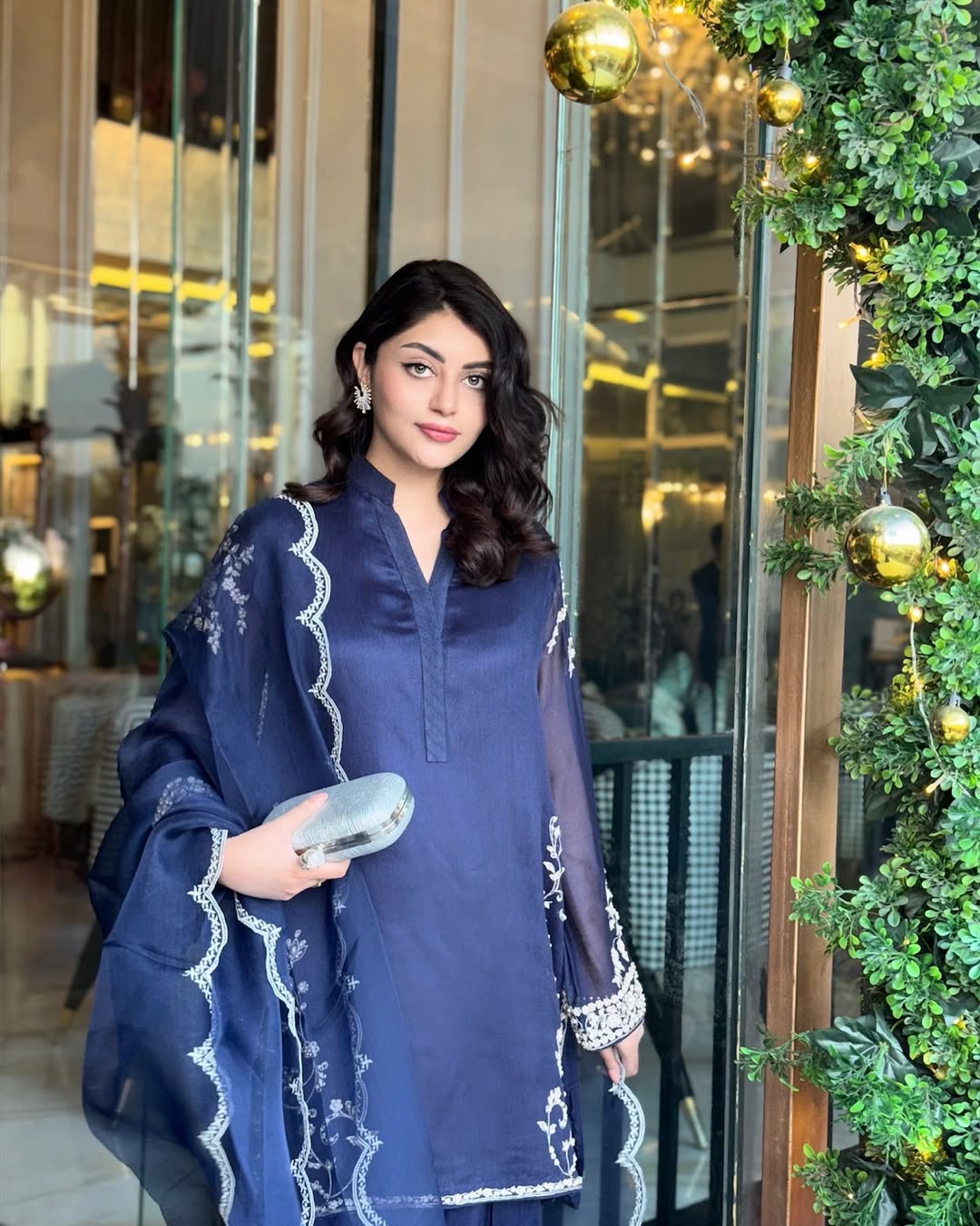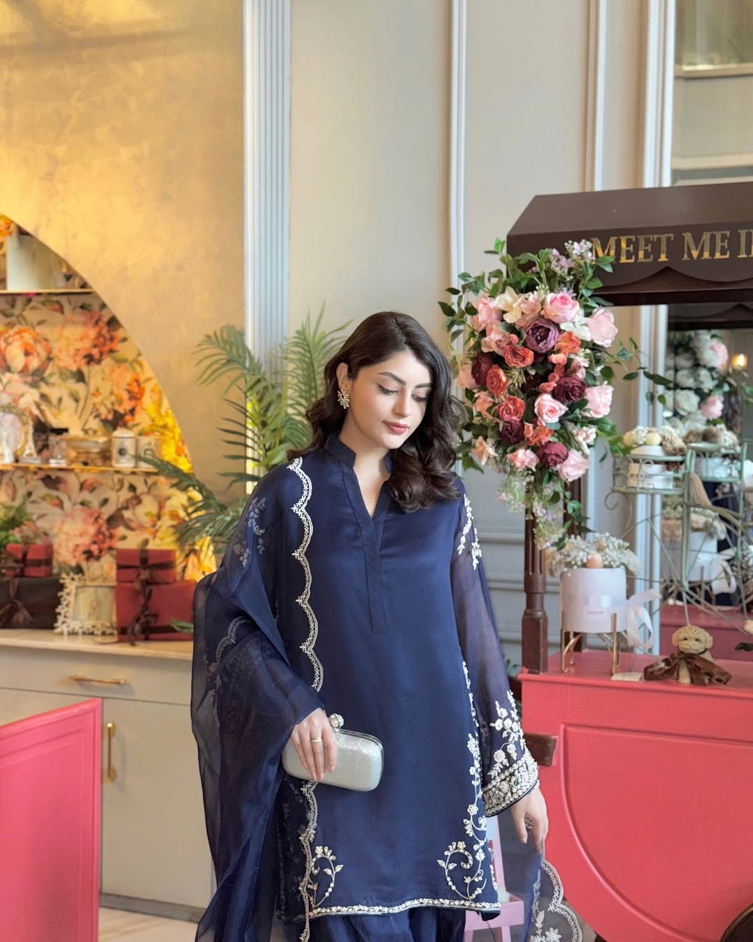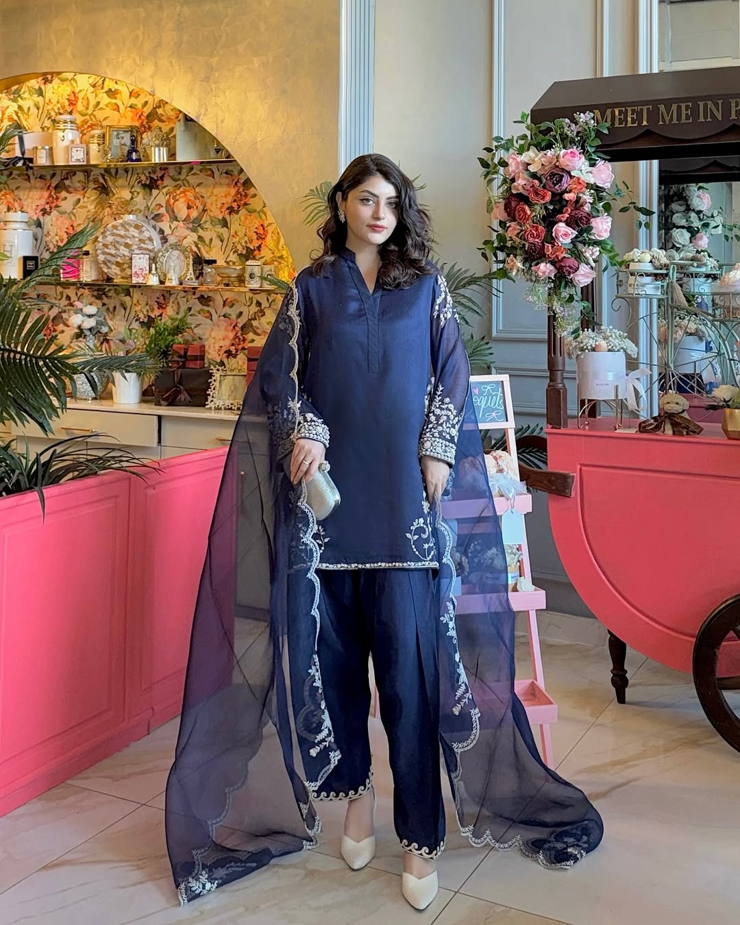 This elegant outfit is crafted from premium silk fabric, offering a smooth and luxurious feel. The design is enhanced with subtle detailing for a refined look.